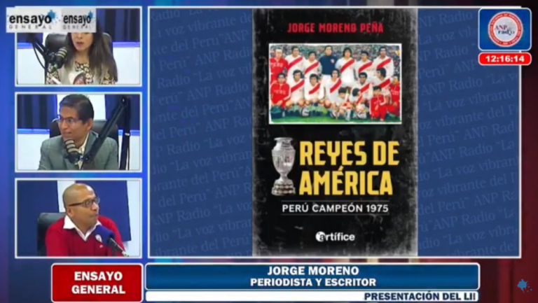 ANP RADIO: JORGE MORENO PRESENTA ‘REYES DE AMÉRICA. PERÚ CAMPEÓN 1975’ En medios - octubre 28, 2025octubre 25, 20250 FICHA Medio: ANP Radio Sección: “Ensayo general” Fecha: 20 de julio de 2025 Entrevista al periodista y escritor Jorge Moreno Peña, autor del libro “Reyes de América. Perú campeón 1975”. Mira la entrevista completa aquí: «Jorge Moreno presenta “Reyes de América”». Foto: Freepik Compartir con:TweetWhatsAppCorreo electrónico