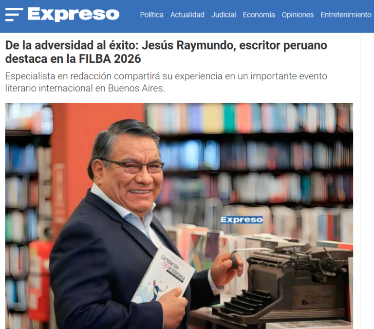 EXPRESO: JESÚS RAYMUNDO, EL ESCRITOR PERUANO QUE DESTACA EN LA FILBA 2026 En medios - abril 28, 2026abril 28, 20260 FICHA Medio: Expreso Sección: “Actualidad” Fecha: 23 de abril de 2026 Mención a Jesús Raymundo (Doctor Tilde), autor del libro informativo “Uso de las minúsculas y mayúsculas”. Lee la nota completa aquí: “Jesús Raymundo, el escritor peruano que destaca en la FILBA 2026”. Foto: Editorial Artífice Compartir con:TweetWhatsAppCorreo electrónico