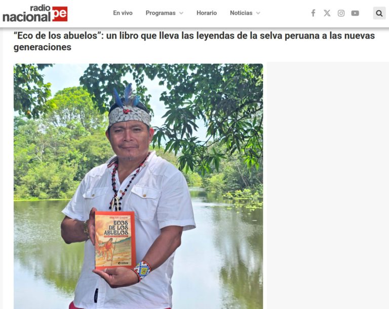 RADIO NACIONAL: ‘ECO DE LOS ABUELOS’, UN LIBRO QUE LLEVA LAS LEYENDAS DE LA SELVA PERUANA A LAS NUEVAS GENERACIONES En medios - marzo 18, 20260 FICHA Medio: Radio Nacional Sección: “Somos cultura” Fecha: 11 de marzo de 2026 Con mención al escritor Braulio Quique, autor del libro “Ecos de los abuelos. Memorias del pueblo harakbut”. Lee la nota completa aquí: «“Eco de los abuelos”, un libro que lleva las leyendas de la selva peruana a las nuevas generaciones». Foto: Freepik Compartir con:TweetWhatsAppCorreo electrónico